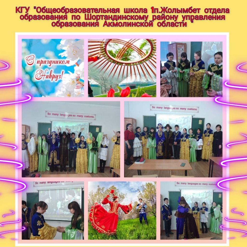 «Ақмола облысы білім басқармасы Шортанды ауданындағы білім бөлімінің Жолымбет ауылы 1 орта мектебі» КММ-де Наурыз мерекесін тойлау аясында мерекелік іс-шаралар өтуде. Наурыз Қазақстандағы құнарлылықты, достық пен махаббатты білдіреді.