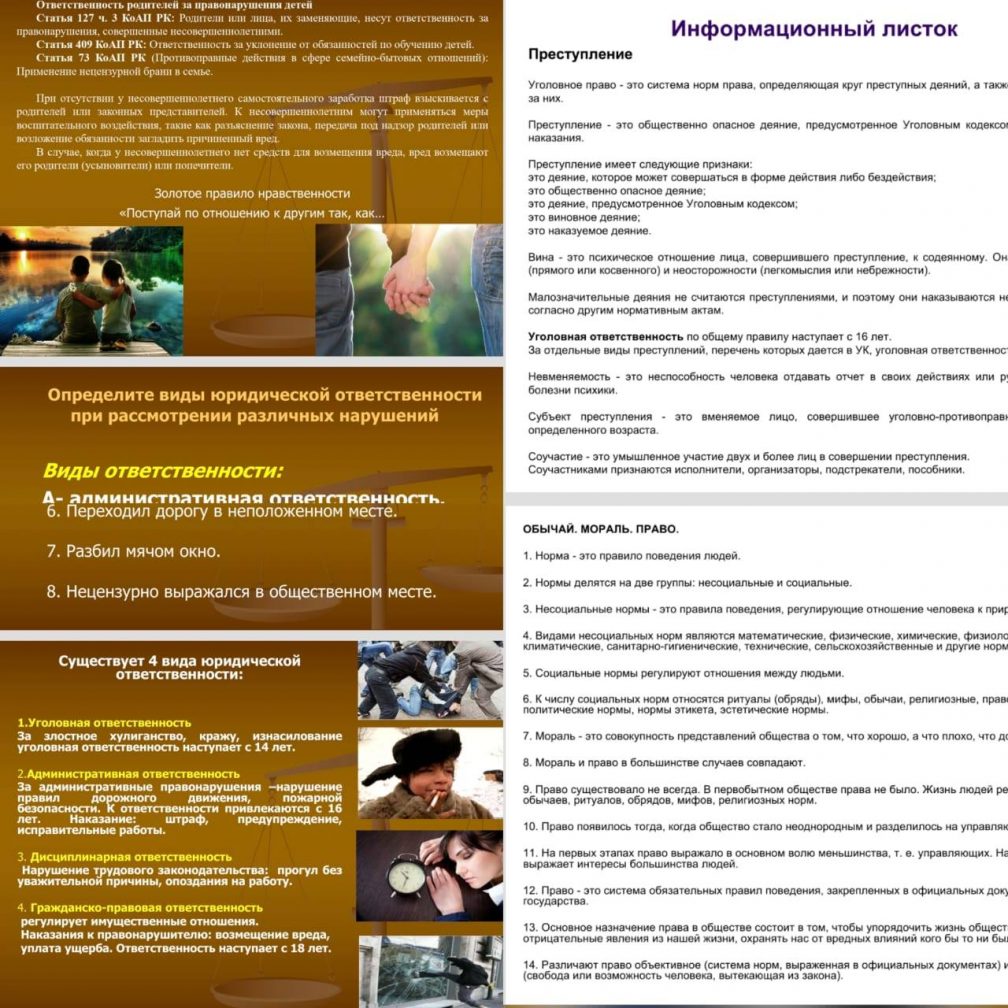 – жауапкершілікті түсіндіру: әрбір адам қоғам мен мемлекет алдында моральдық және құқықтық жауапкершілік арқалайтынын ұғындыру;