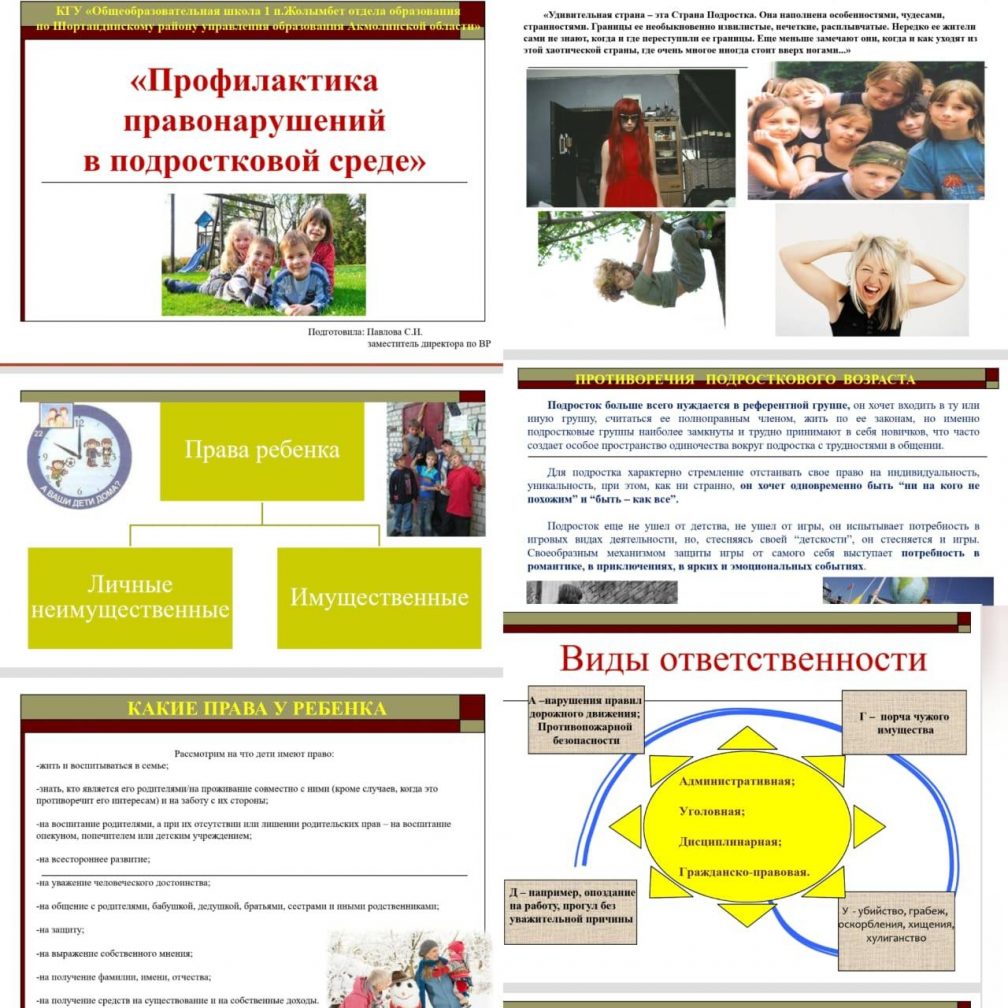 Профилактикалық әңгімелер – бұл құқықбұзушылықтың алдын алудың жеке тәсілі, оның мақсаты – адамға оның моральдық және құқықтық жауапкершілігін, сондай-ақ қоғамға қарсы әрекеттердің әлеуметтік және құқықтық салдарын түсіндіру. «Прокурорлық сағат» аясында және құқықбұзушылықтардың алдын алуға бағытталған профилактикалық жұмысты жүргізу мақсатында Ақмола облысы білім басқармасының Шортанды ауданы бойынша білім бөліміне қарасты «Жолымбет кентіндегі №1 жалпы білім беретін мектеп» КММ-де сынып сағаттары барысында «Жасөспірімдер мен жастар арасындағы құқықбұзушылықтың алдын алу» тақырыбында Қауіпсіздік сабақтары өткізілді.