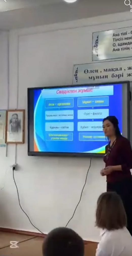 Сабақ барысында жасанды интеллект элементтері мен заманауи цифрлық әдістер қолданылып, оқу үдерісі динамикалық әрі интерактивті өтті. Оқушылар бейнематериалдармен жұмыс жасап, жаңа сөздермен танысты, кластер құрастырды, комикс-диалогтар жасады және Kahoot платформасында тест орындады. Барлық оқушылар белсенділік танытып, тақырыпқа зор қызығушылық көрсетті.