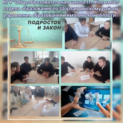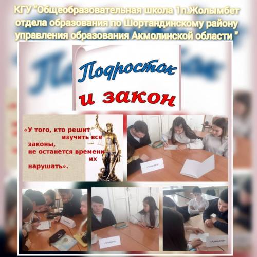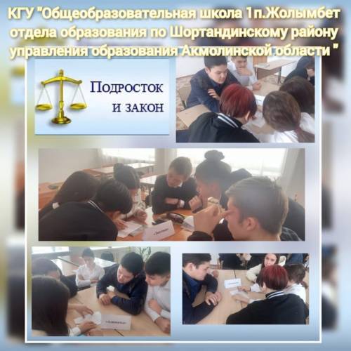 Ақмола облысы білім басқармасының Шортанды ауданы бойынша " хатқа сәйкес, жоғары сынып оқушылары арасында тарих және құқық негіздері мұғалімі Ж.с. Тілеува "Заң және Жасөспірім"Құқықтық сағатын өткізді.