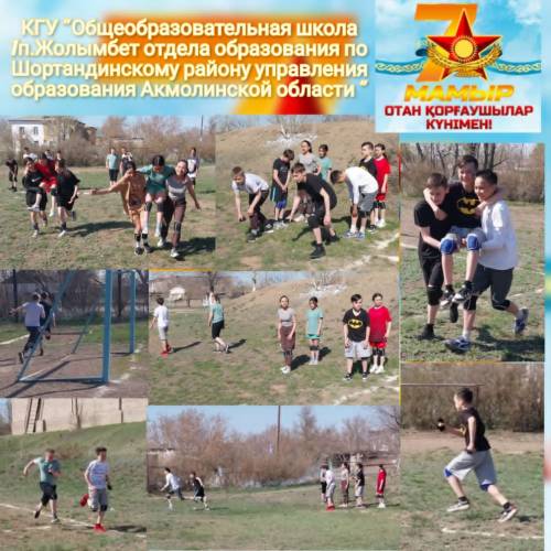 "Ақмола облысы білім басқармасының Шортанды ауданы бойынша білім бөлімінің 1п.Жолымбет жалпы білім беретін мектебі" КММ, дене шынықтыру мұғалімдері С.А. Чистобаев, А. и. Дүйсенов 7 сынып оқушылары арасында Отан қорғаушылар күніне арналған спорттық эстафета өткізді.