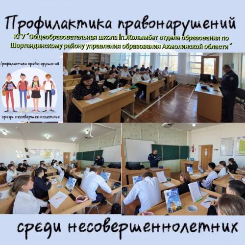 Бүгін "Ақмола облысы білім басқармасының Шортанды ауданы бойынша білім бөлімінің Жолымбет кентінің 1 жалпы білім беретін мектебі" КММ оқушылармен және ата-аналармен құқық бұзушылықтың алдын алу мәселелері бойынша кездесулер өткізу кестесіне сәйкес, кәмелетке толмағандар арасында нашақорлық, есірткі қылмысы және қауіпсіздікті қамтамасыз ету, 9 сынып оқушыларының учаскелік полиция инспекторы П.Жолымбет полиция майоры Ж. Д. Самбетовпен кездесуі өтті. кездесу барысында "жасөспірімдер мен жастар ортасында қылмыстар мен құқық бұзушылықтардың алдын алу"тақырыбында әңгіме өткізілді. Қойылған мақсаттар мен міндеттер: құқық бұзушылықтардың себептері мен жағдайларын анықтау және жою, құқық бұзушылықтарға жол бермеу бойынша ұйымдастырушылық, құқықтық, экономикалық, әлеуметтік, тәрбие шараларының жиынтығы.