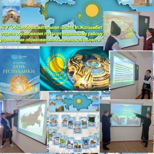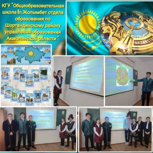 "О, Өз Отаныңды ашу үшін алдымен оны жүрегіңде ашу керек" Менің Отаным – табиғаттың сұлулығы, Бұл бақыт, махаббат үлкен мұхит. Бұл байлықтың символы, бостандықтың символы, Менің Отаным-менің Тәуелсіз Қазақстаным… Республика күніне арналған іс-шараларды өткізудің бекітілген жоспарына сәйкес, "Ақмола облысы білім басқармасының Шортанды ауданы бойынша білім бөлімінің Жолымбет кентінің №1 жалпы білім беретін мектебі" КММ-де атаулы күнді мерекелеуге орайластырылған іс-шаралар өтуде. Өткізудің мақсаттары мен міндеттері: оқушылардың Қазақстан Республикасының қалыптасу жолы туралы білімдерін байыту; Қазақстан Республикасының өткені мен бүгіні туралы идеяларды қалыптастыру; ел тарихына қызығушылықты дамыту; азаматтықты, патриотизмді және өз Отанына деген сүйіспеншілікті тәрбиелеу. "Біздің туымыз – Тәуелсіздік. Біздің мақсатымыз – бейбітшілік пен өркендеу. Бұл дүниеде бізде бір ғана Отанымыз бар – бұл Қазақстан!». Біз Қазақстанның болашағын құрамыз, халықтар арасындағы бейбітшілік пен достықты сақтаймыз және нығайтамыз. Біз Ежелгі және әдемі Қазақстан жерінде бейбітшілікті сақтауымыз керек-бұл біздің өркендеуіміздің маңызды шарты!