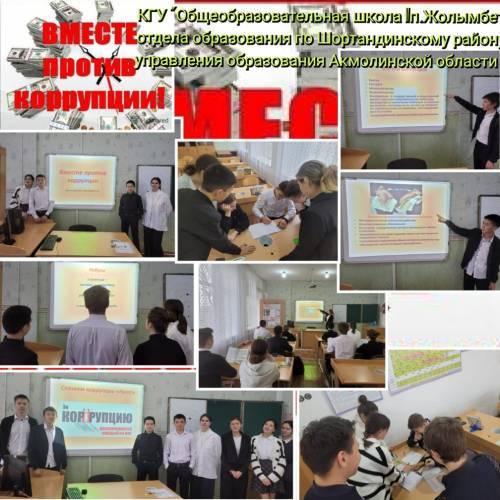 "Ақмола облысы білім басқармасының Шортанды ауданы бойынша білім бөлімінің 1п.Жолымбет жалпы білім беретін мектебі" КММ әзірленген жоспарға сәйкес, 9 сынып оқушыларымен сынып жетекшісінің оқушылармен белгілі бір әңгімесі ретінде "сыбайлас жемқорлыққа қарсы дүниетанымды қалыптастыру" сынып сағаты өткізілді. Қойылған мақсаттар мен міндеттер: жеке-жеке қасиеттерді, өмірлік ұстанымды, мінез-құлықты дамыту. Іс-шара тәрбиелік әңгіме түрінде тәрбиелік болып табылады. Қазіргі жағдайдағы тәрбие-бұл саналы түрде бас тартуды, содан кейін оқушылардың сыбайлас жемқорлықты қабылдамауын қалыптастыру. Сауатты ұйымдастырылған әңгіме сыбайлас жемқорлыққа қарсы тәрбие жүйесіндегі маңызды элемент болып табылады. Мұндай іс-шараларды өткізу болашақ туралы ойлануға және әр адамның өмірінде дұрыс таңдау жасауға шақырады.