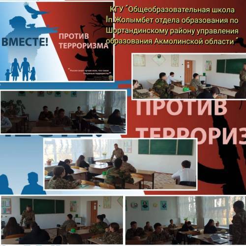 "Ақмола облысы білім басқармасының Шортанды ауданы бойынша білім бөлімінің 1п.Жолымбет жалпы білім беретін мектебі" КММ НВиТП Лупул мұғалімі.И. в. "террорға қарсы. Терроризм жоқ".